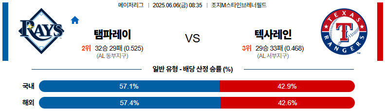야구 06월 06일 MLB 탬파베이 vs 텍사스