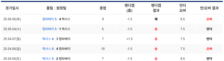 투수전 흐름 예상되며 탬파베이의 신승 흐름 예상.