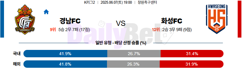 ✅ 흐름상 화성이 우세 전개 이어가며 실점 가능성 높은 경남 수비 흔들릴 전망
