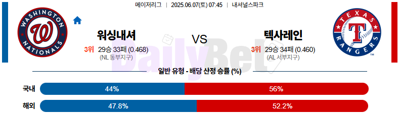 야구 06월 07일 MLB 워싱턴 vs 텍사스