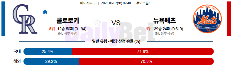 야구 06월 07일 MLB 콜로라도 vs 뉴욕메츠