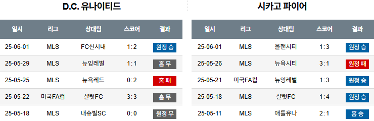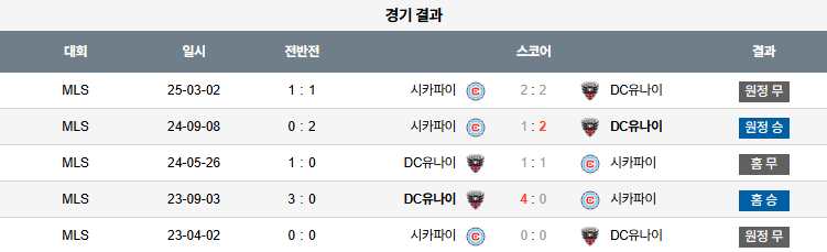 | 항목 | DC유나이티드 | 시카고 파이어 |