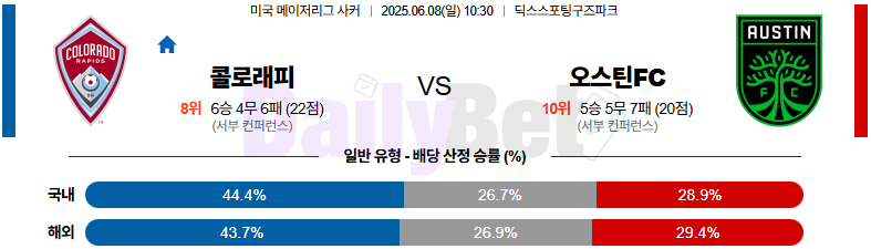 축구 06월 08일 메이저리그사커 콜로라도 라피즈 vs 오스틴 FC