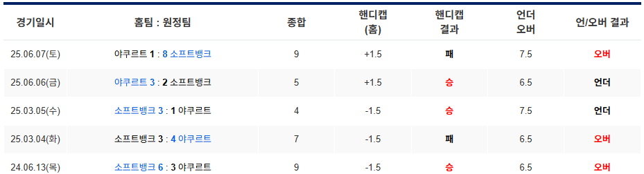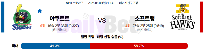 야구 06월 08일 NPB 야쿠르트 vs 소프트뱅크