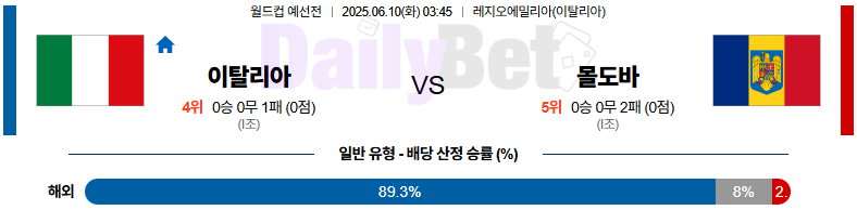 ⚙️ 전술 완성도와 선수 조합에서 이탈리아가 압도적 우위