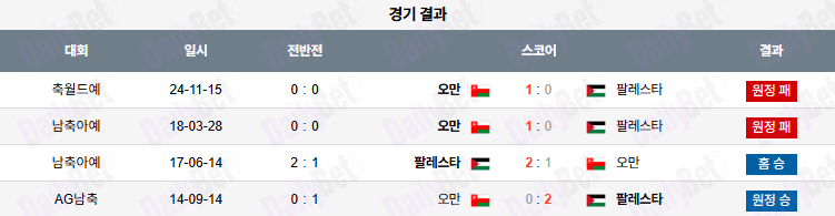 “조직적 수비와 역습 구조 완성도 높은 팔레스타인이 오만의 흔들리는 수비 전환을 효과적으로 공략할 가능성 높음”