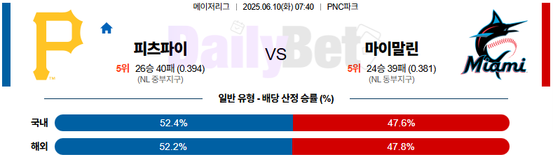 야구 06월 10일 MLB 피츠버그 vs 마이애미
