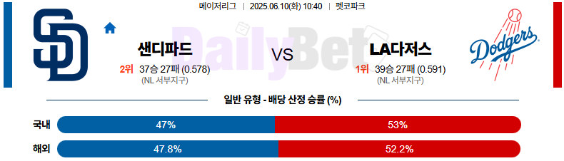 야구 06월 10일 MLB 샌디에이고 vs LA다저스