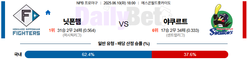 야구 06월 10일 NPB 니혼햄 vs 야쿠르트