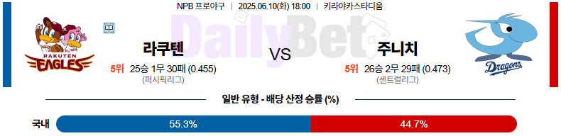 야구 06월 10일 NPB 라쿠텐 vs 주니치