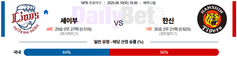 야구 06월 10일 NPB 세이부 vs 한신
