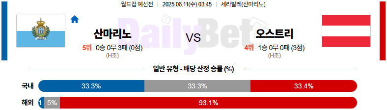 축구 06월 11일 월드컵 예선전 산마리노 vs 오스트리아