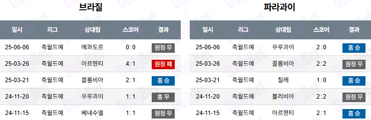 | 항목 | 브라질 | 파라과이 |