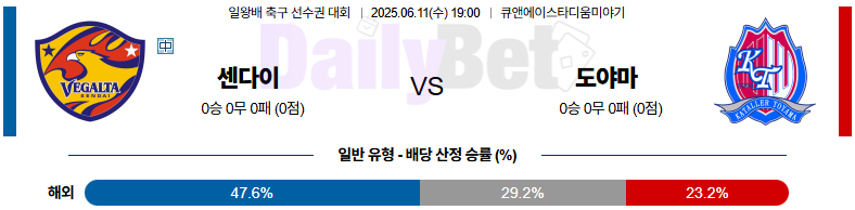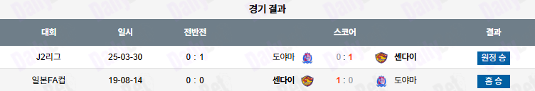 ✅ 도야마 수비 조직력 약화로 센다이가 주도권 잡을 전망