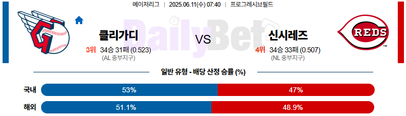 야구 06월 11일 MLB 클리블랜드 vs 신시내티