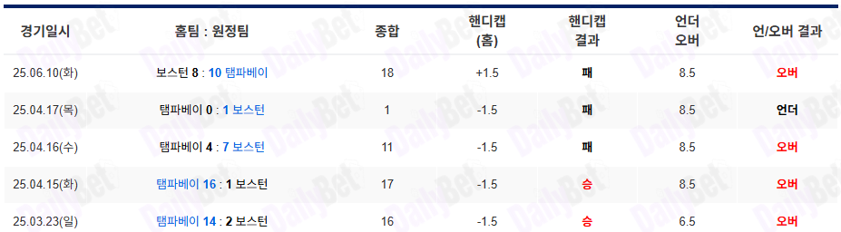 경기 후반 불펜 변수는 있지만, 선발이 긴 이닝 소화 시 탬파베이 쪽으로 기울 가능성이 높다.