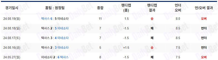원정 부진과 타격의 답답함을 고려할 때, 홈에서 흐름 좋은 미네소타 쪽이 우세할 경기.