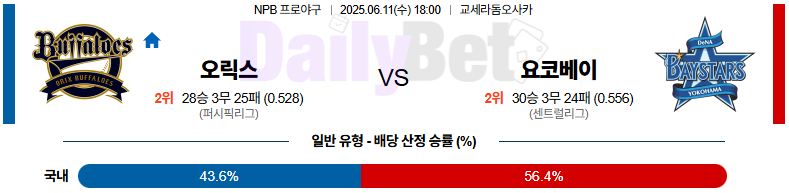 야구 06월 11일 NPB 오릭스 vs 요코하마