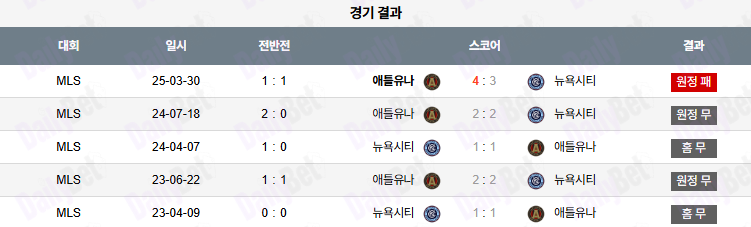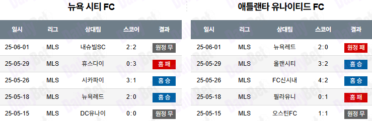| 항목 | 뉴욕시티 | 애틀랜타 유나이티드 |