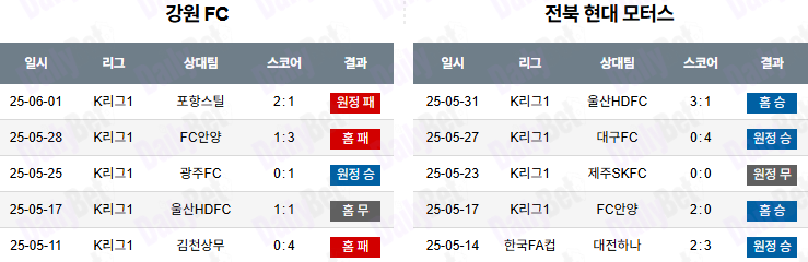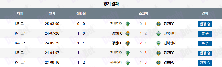 ✅ 강원의 단순한 전개 흐름과 수비 집중력 저하가 전북의 지속 공격에 노출될 전망
