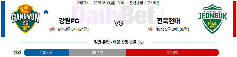 “균형 잡힌 공격과 전방 압박을 앞세운 전북이 전술적 완성도에서 앞서며, 단조로운 강원 수비를 공략할 확률이 높다”