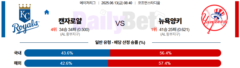 ⚾️ 캔자스시티 로열스 vs 뉴욕 양키스