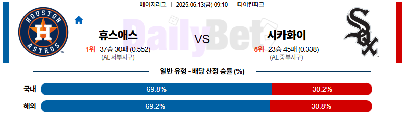 야구 06월 13일 MLB 휴스턴 vs 시카고W