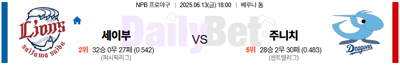야구 06월 13일 NPB 세이부 vs 주니치