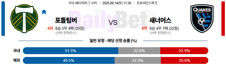 축구 06월 14일 메이저리그사커 포틀랜드 팀버스 vs 산호세 어스퀘이크