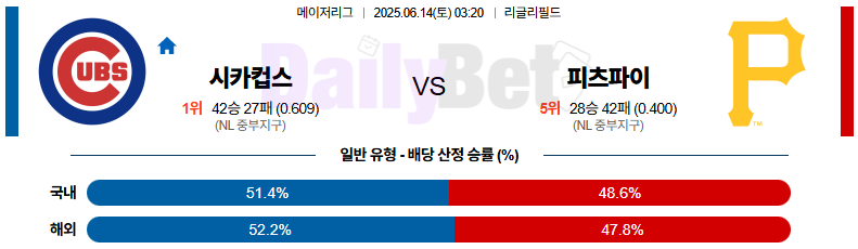 야구 06월 14일 MLB 시카고C vs 피츠버그