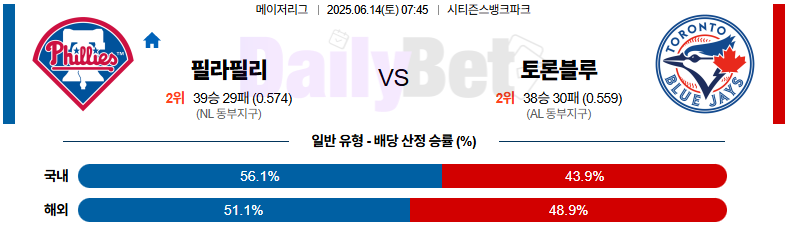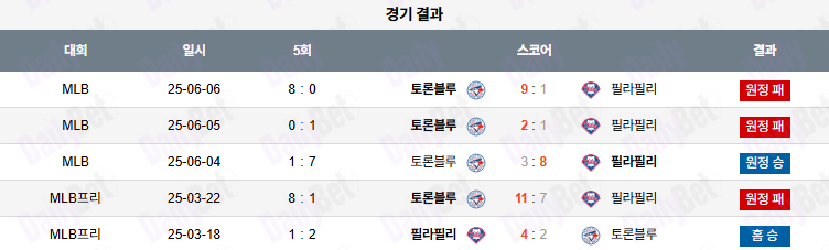 최근 필라델피아는 타선이 홈에서 반등, 반면 토론토는 원정에서 타격감 유지와 불펜 집중력이 뚜렷하다.