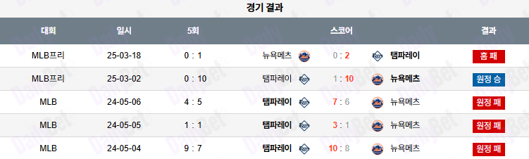⚾️ 뉴욕 메츠 vs 탬파베이 레이스