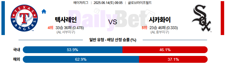 야구 06월 14일 MLB 텍사스 vs 시카고W