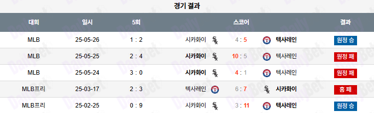⚾️ 텍사스 레인저스 vs 시카고 화이트삭스