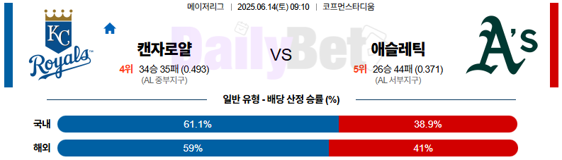⚾️ 캔자스시티 로얄스 vs 오클랜드 애슬레틱스