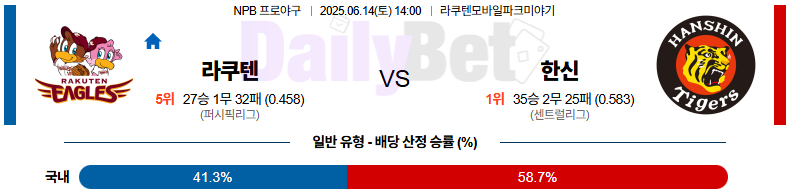 야구 06월 14일 NPB 라쿠텐 vs 한신