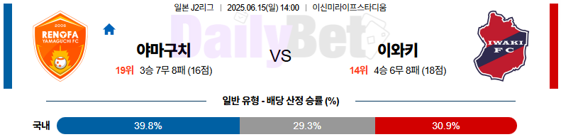 축구 06월 15일 J리그 2 레노파 야마구치 vs 이와키 FC