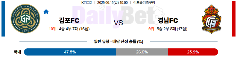축구 06월 15일 K리그 2 김포 FC vs 경남 FC