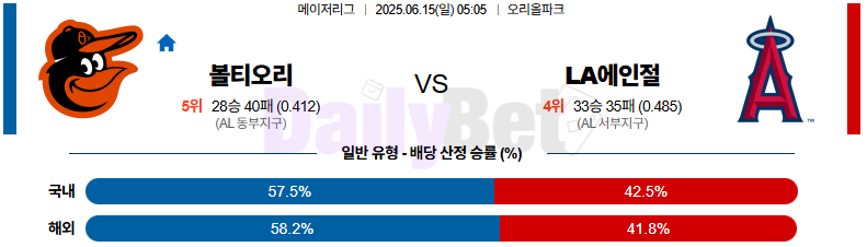 야구 06월 15일 MLB 볼티모어 vs LA에인절스