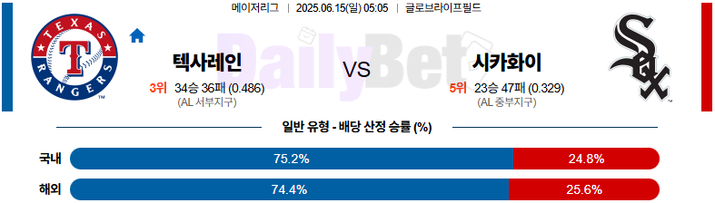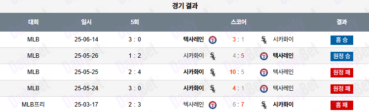 야구 06월 15일 MLB 텍사스 vs 시카고W