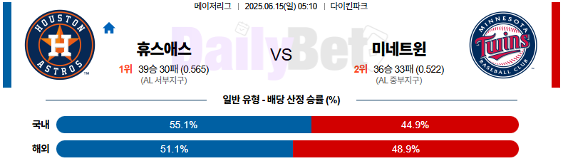 야구 06월 15일 MLB 휴스턴 vs 미네소타