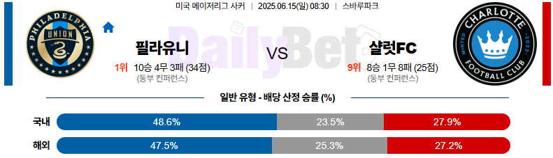 축구 06월 15일 메이저리그사커 필라델피아 유니언 vs 샬럿 FC