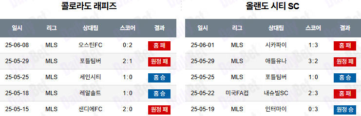 축구 06월 15일 메이저리그사커 콜로라도 라피즈 vs 올랜도 시티 SC