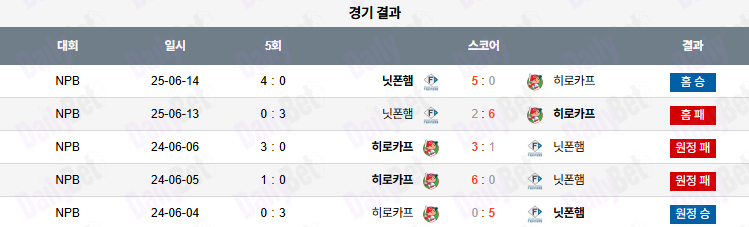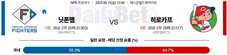 야구 06월 15일 NPB 니혼햄 vs 히로시마