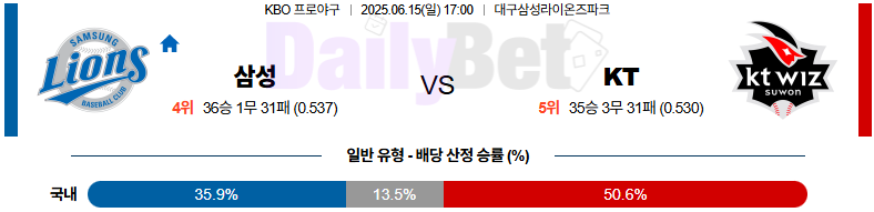 ⚾️ 삼성 라이온즈 vs KT 위즈 (KBO)