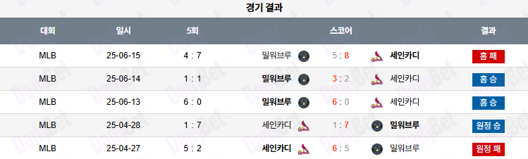 야구 06월 16일 MLB 밀워키 vs 세인트루이스