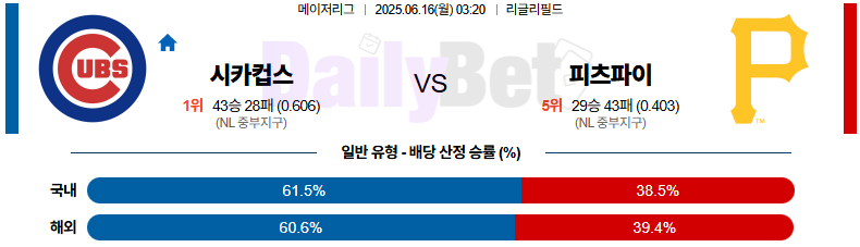 야구 06월 16일 MLB 시카고C vs 피츠버그