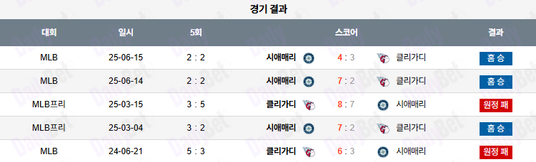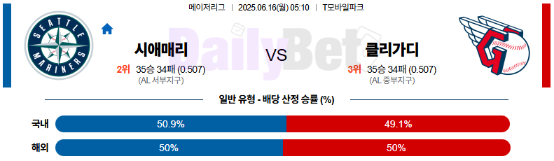 야구 06월 16일 MLB 시애틀 vs 클리블랜드
