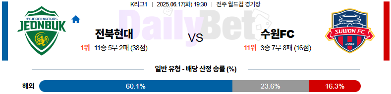 축구 06월 17일 K리그 1 전북현대모터스 vs 수원 FC