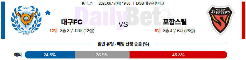 축구 06월 17일 K리그 1 대구 FC vs 포항 스틸러스